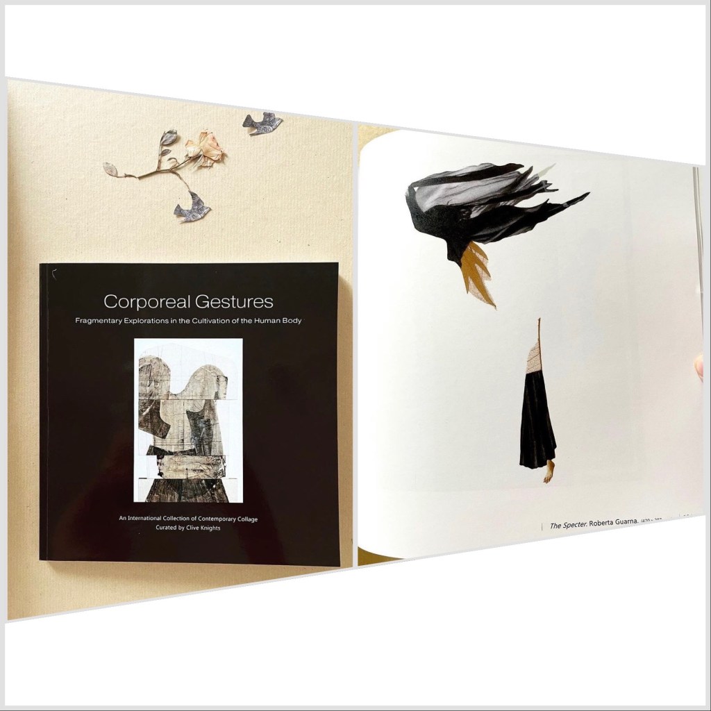 Collage analogico, cucitura su carta con filo cotone, matite, carta giapponese,