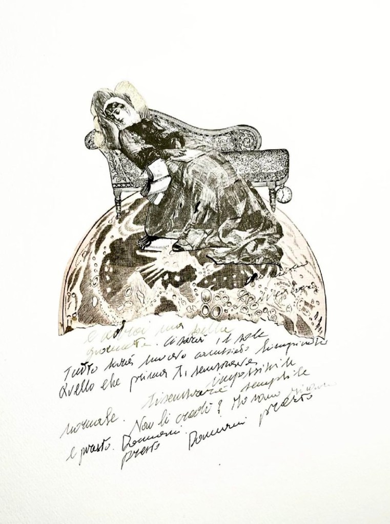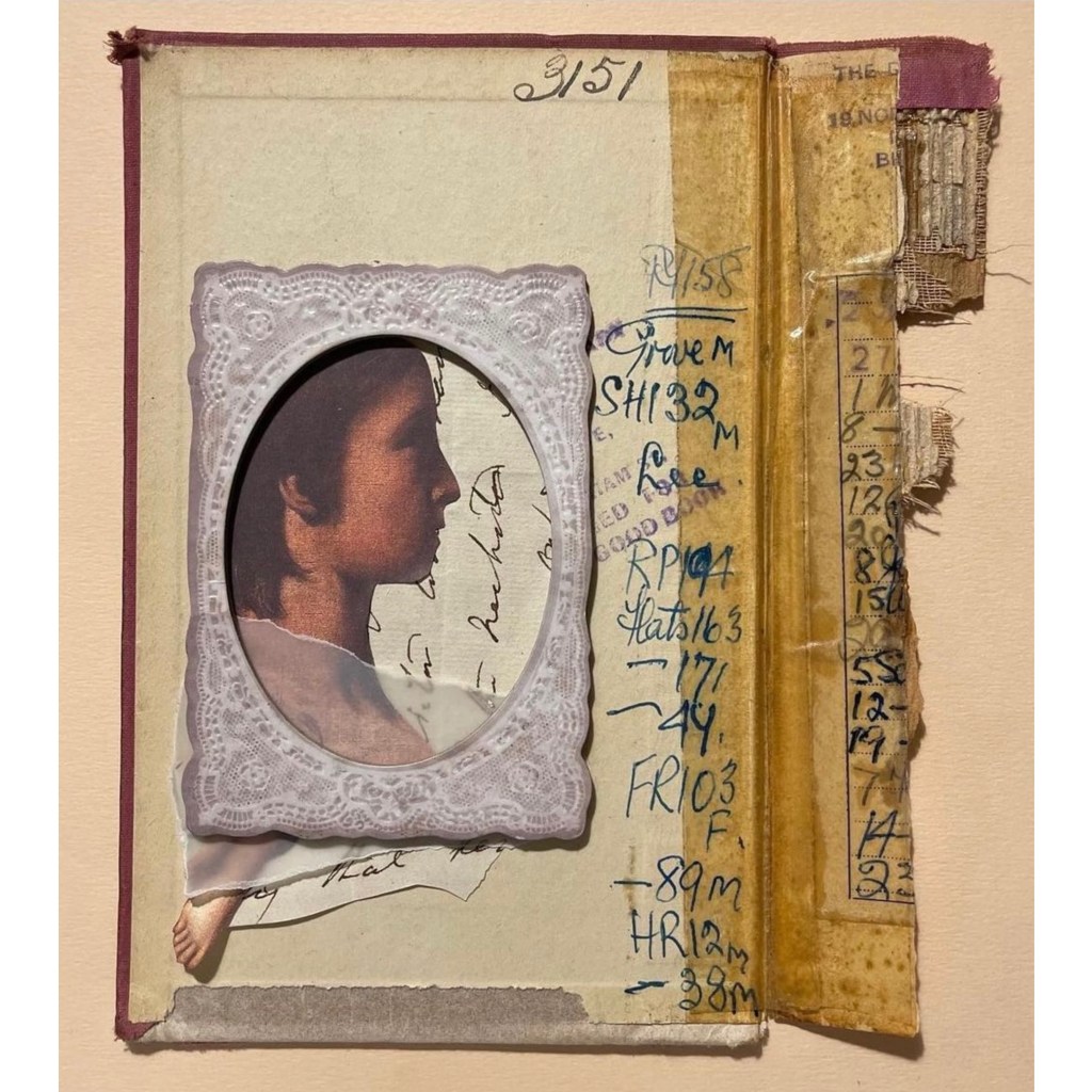 Collage analogico, carta di differenti tipi, carta metà ‘800, montato su copertina libro